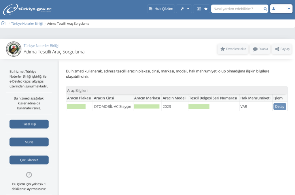 e-Devlet’te bu hizmetin resmi adı: Adıma Tescilli Araç Sorgulama