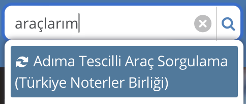 | e-Devlet’te adınıza kayıtlı araçları görmek için arama kısmına: “araçlarım” yazın, çıkan sonuçlardan yandakine tıklayın. | ![]() |